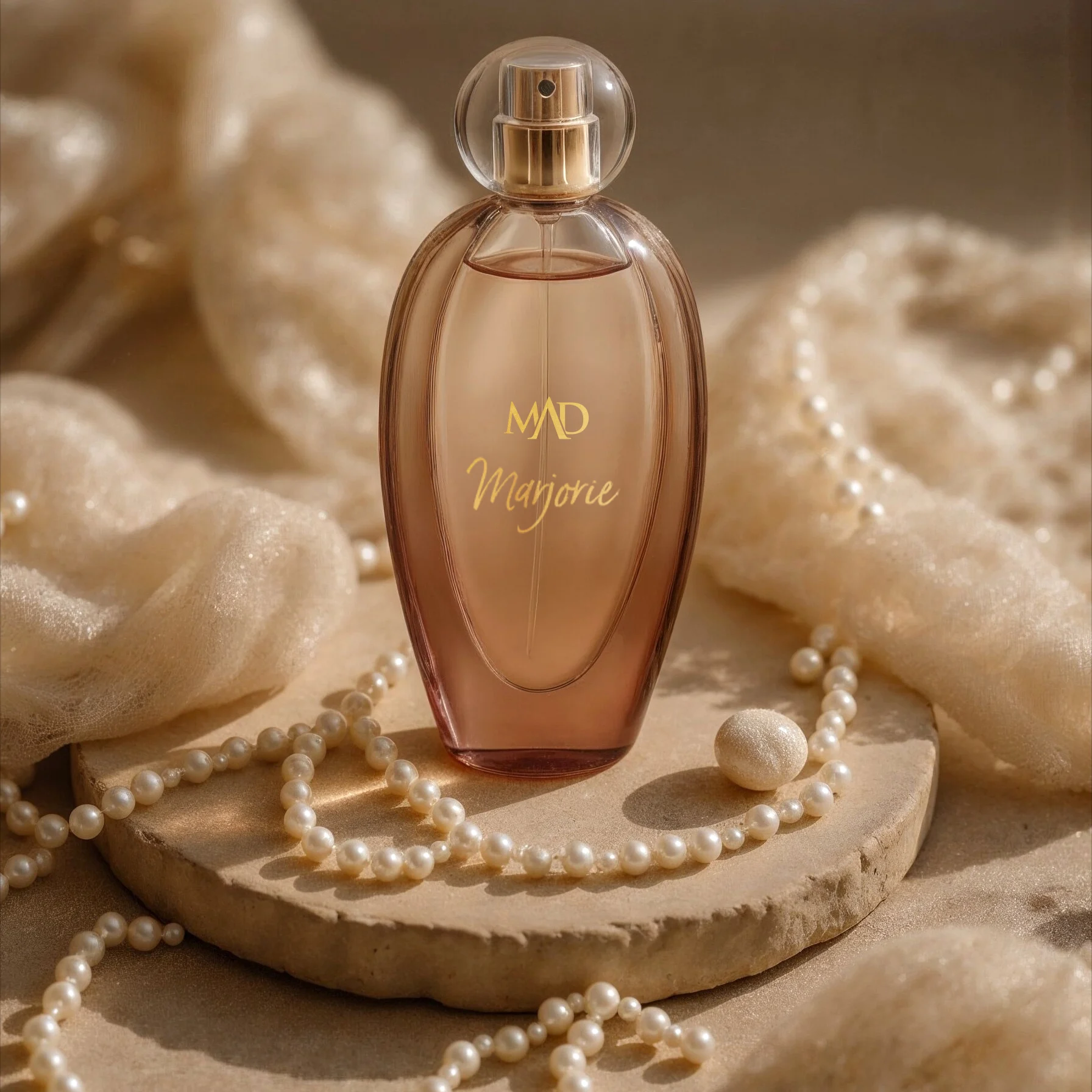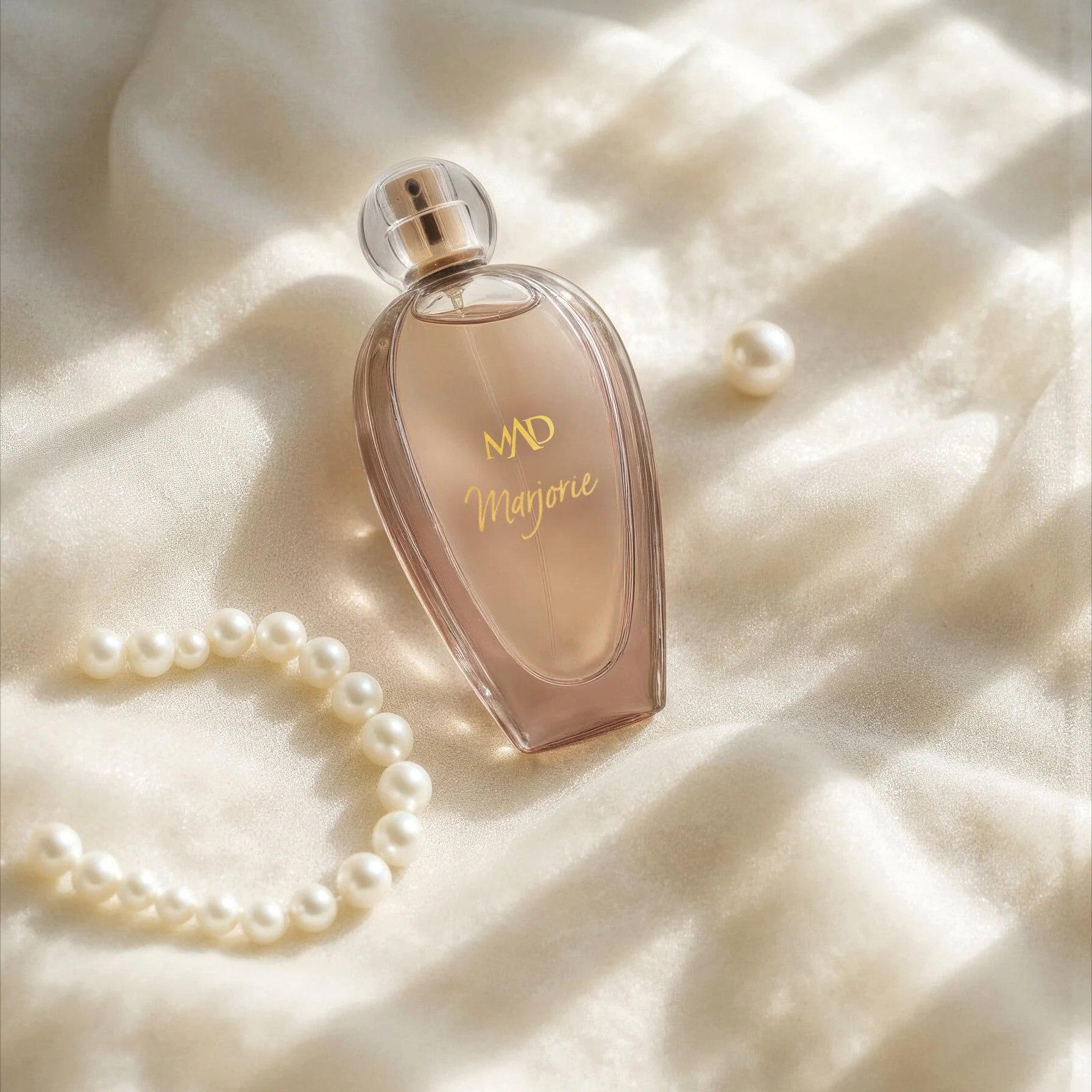 Marjorie, the perfume of a modern princess. A woman who captivates everyone with her timeless beauty, remaining untouchable with her elegance and mystery… Her scent, which swirls around her like an invisible aura, captivates everyone who witnesses her presence. When she passes by, it is perceived like a light breeze, lingering in your memory even when you close your eyes. With the refined confidence of being unattainable, she arouses curiosity without effort. It opens with the fruity touch of fresh lemon, peach, and pear; its heart hides the delicate notes of geranium, rose, and heliotrope. Over time, the warmth of white musk, vanilla, tonka bean, and sandalwood leaves a lasting impression on your skin. She is the most special woman in the crowd. She stands out not with boldness, but with natural elegance. At a gathering, her presence is felt even by her scent alone.
