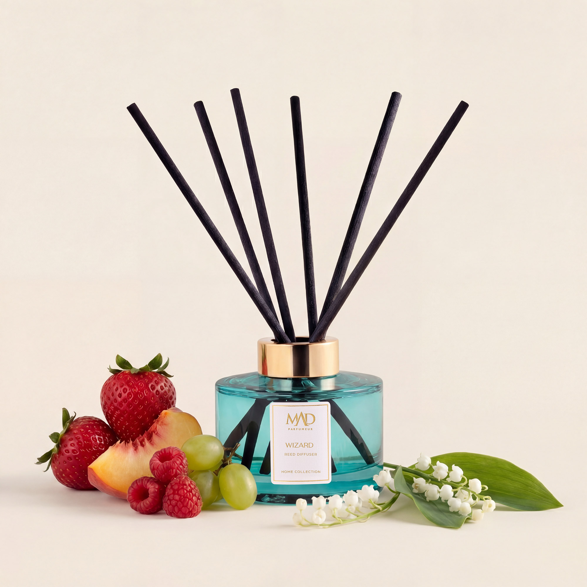 MAD Wizard е дизајниран со својот егзотичен мирис да внесе енергична свежина и мистериозна нота во вашите простории. Живите ноти на маракуја и тути фрути, кои се чувствуваат веднаш, ви нудат шарен и енергичен почеток. Потоа, елегантната хармонија на лилјак и кедар носи топло чувство и спокој инспириран од природата во вашата околина.
