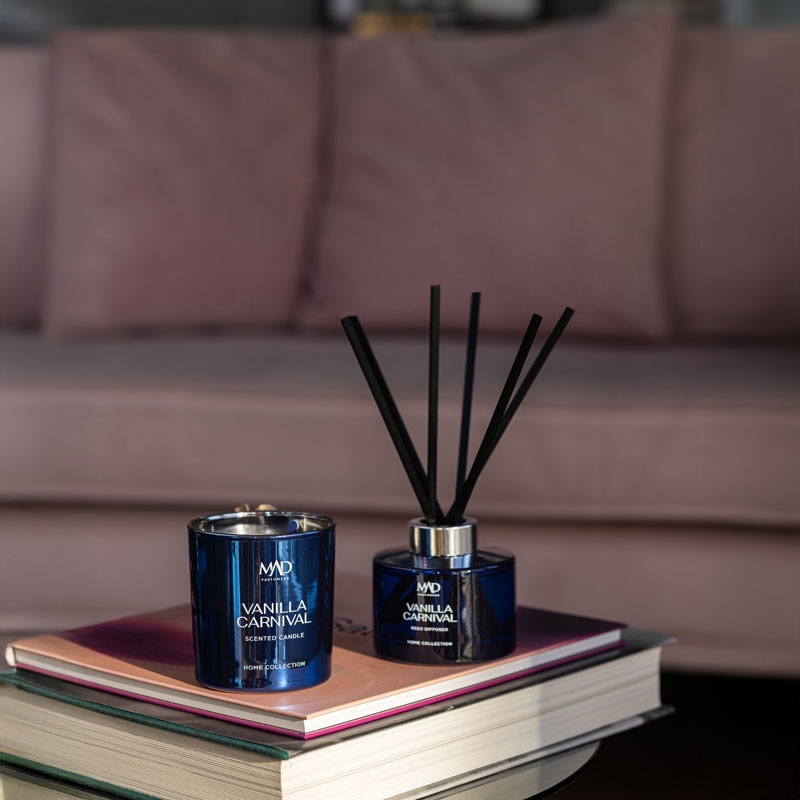 Vanilla Carnival starts with warm touches of cardamom and cinnamon, elegant It offers a unique harmony where jasmine and sweet caramel meet in the heart. Dip woody touches in the notes, exotic nutmeg, musk and a unique carnival atmosphere in your home by combining with the magic of vanilla