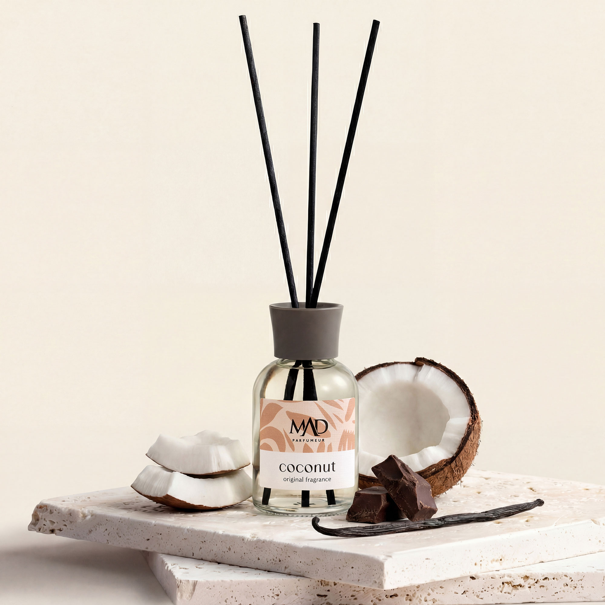 The sweet combination of coconut and chocolate creates an exotic feeling with milk and caramel textures.