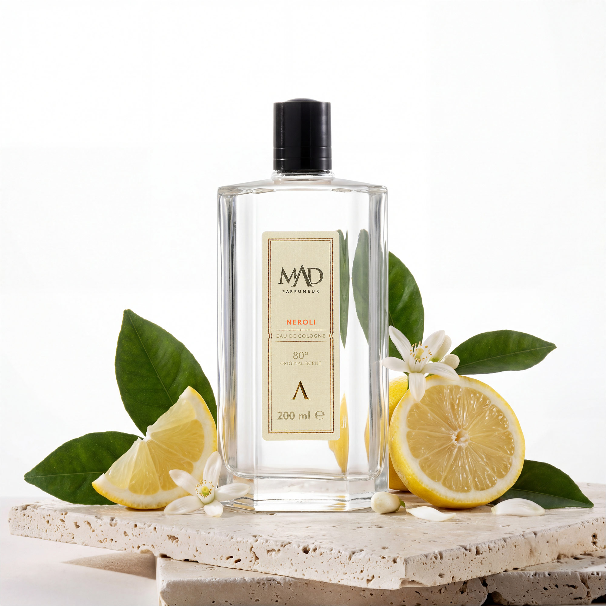 Mad Neroli Cologne blends the fresh citrus notes of the Mediterranean with the tropical spirit of Singapore. Designed for both women and men, this unisex fragrance perfectly complements a modern and dynamic lifestyle.